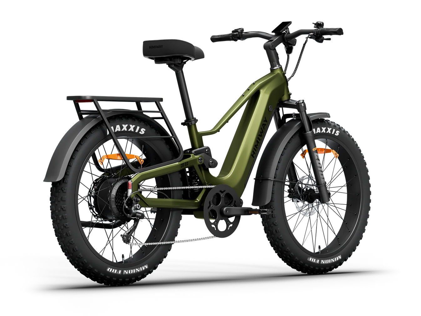 | Tires | Maxxis Minion FBF/FBR 26x4.0" (Tubeless Ready) | Premium rubber — trapezoidal tread, EXO sidewall protection, 3,000-mile durability |